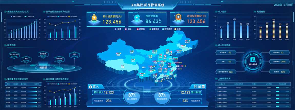 - 我們基于webgl等技術(shù)開(kāi)發(fā)了大屏圖表插件,通過(guò)簡(jiǎn)單拖拽即可實(shí)現(xiàn)自動(dòng)播放、3D動(dòng)畫特效等多種效果;圖表類型包括輪播三維組合地圖、輪播gis點(diǎn)地圖、流向地球、時(shí)間齒輪和目錄齒輪等,科技感十足,讓大屏展示效果更加炫酷